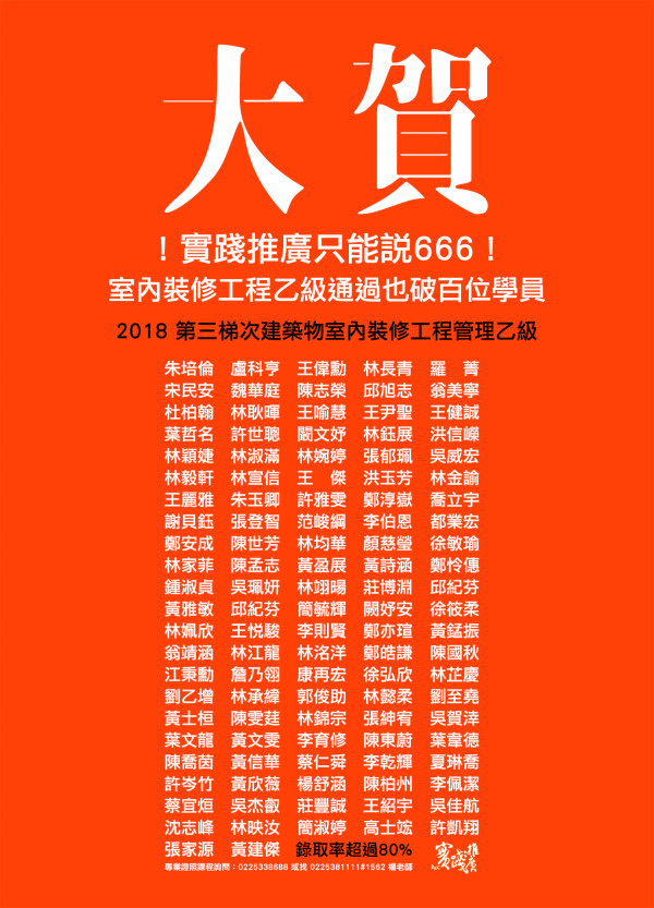 今年第十年,也是豐碩感恩的一年。實踐證照班的學生在乙級室內裝修設計證照考試中通過率超過了九成,人數超過一百一十位,真心恭喜學生辛苦練習終得回報,自己也覺得非常自豪且感動。回首十年教學歷程,一步一腳印,點點滴滴,各種感觸湧上心頭。