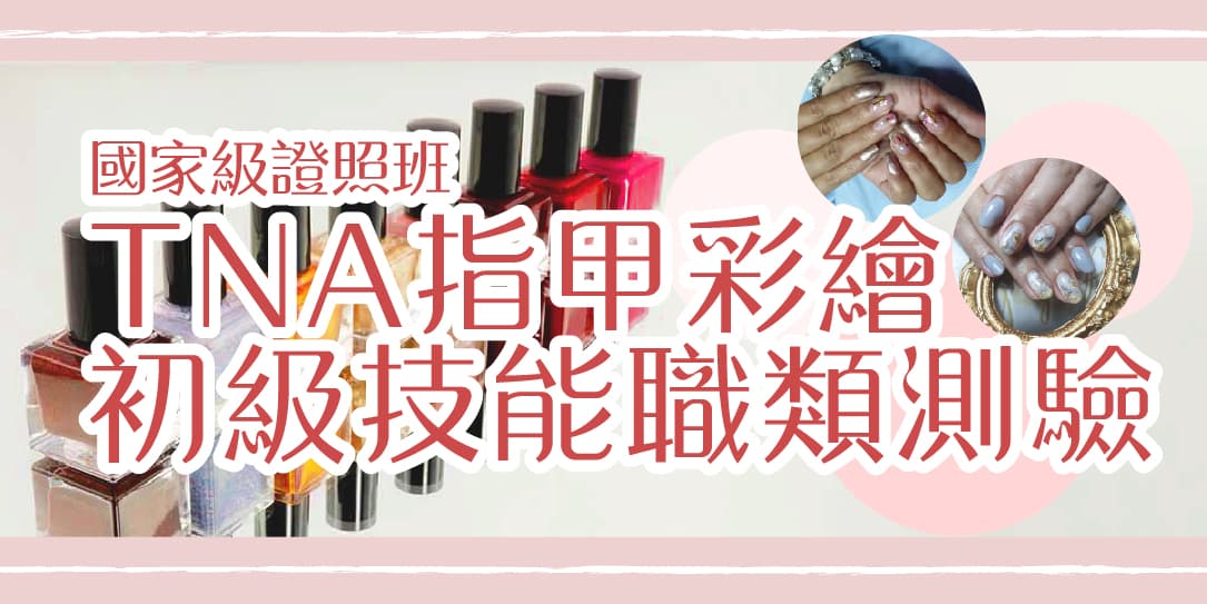 國家級證照班-TNA指甲彩繪初級技能職類測驗美甲是女人的第二張臉,健康美麗的指甲讓整體大大加分。天然環保無臭無味的凝膠指甲 在沙龍市場上相當受歡迎,80%顧客有固定消費習慣。本課程以輔導考取指甲彩繪職類初級技能測驗(證書效力等同國家檢定丙級)為出發點而設計的美甲師創業課程。內容涵蓋深廣,包含消毒與衛生、指甲構造生理學、凝膠產品使用、色彩學、美甲專業技巧…等, 培養具有獨立作業能力的專業美甲師。
