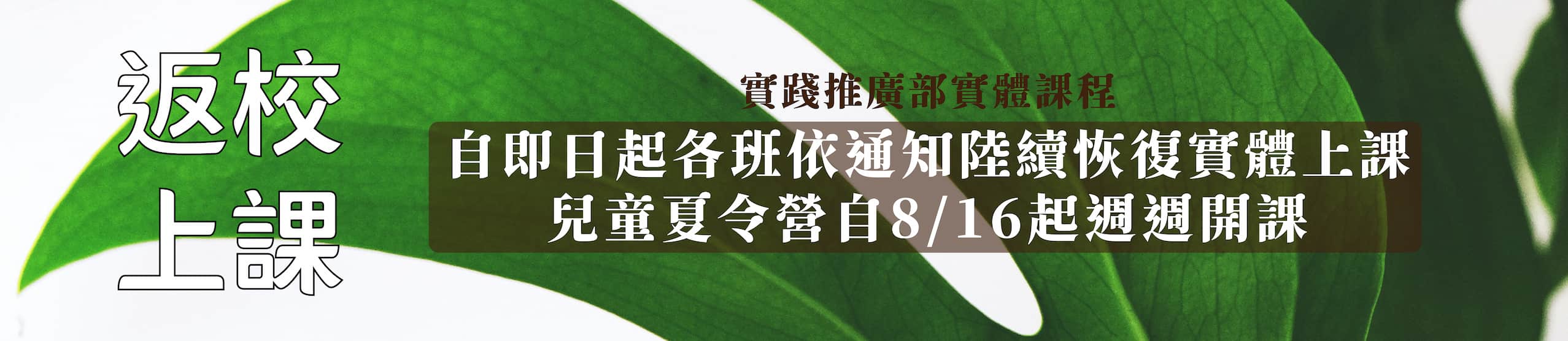 「返校上課」推廣部所有課程自即日起陸續恢復實體上課