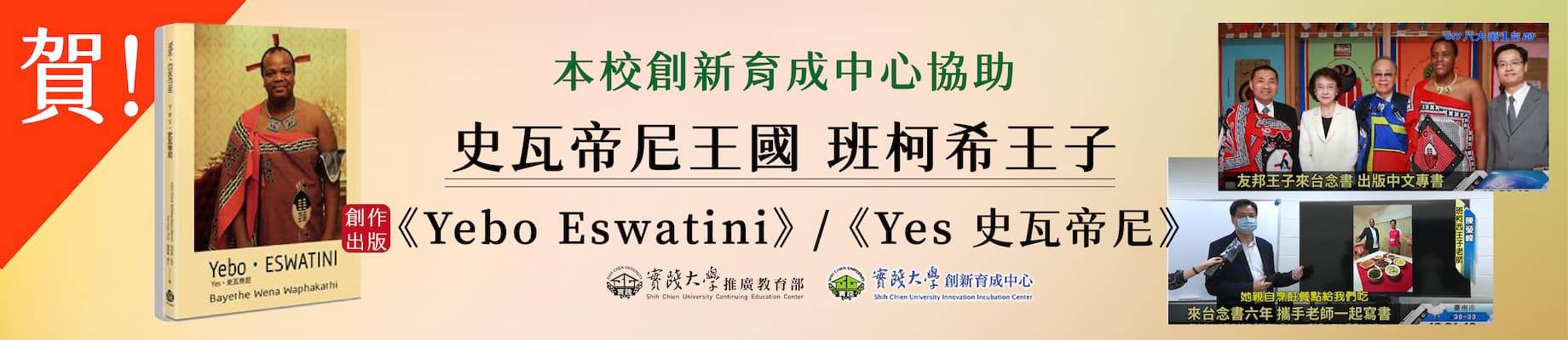 【賀!】本校創新育成中心協助史瓦帝尼王國 班柯希王子 創作出版《Yebo Eswatini》/《Yes 史瓦帝尼》
