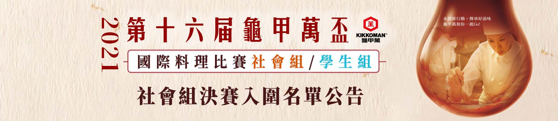 【公告】2021年第十六屆龜甲萬盃社會組烹飪大賽入圍名單