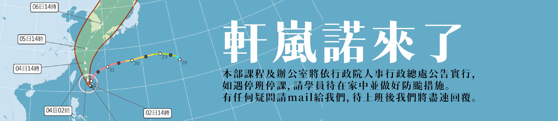 【颱風資訊】如遇停班停課,本部課程及辦公室將比照公告實行