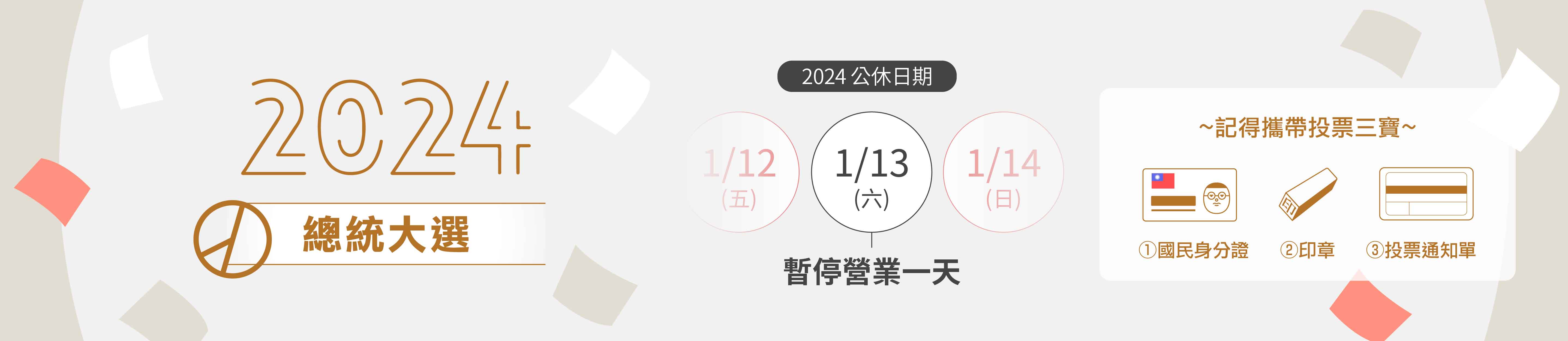 各位學員及老師們好, 2024/1/13 為 2024總統大選日 1/13(六) 暫停營業一天 如學員有需要詢問事項,請先將疑問寄至cec@g2.usc.edu.tw,我們將於上班後盡快回覆您,謝謝。